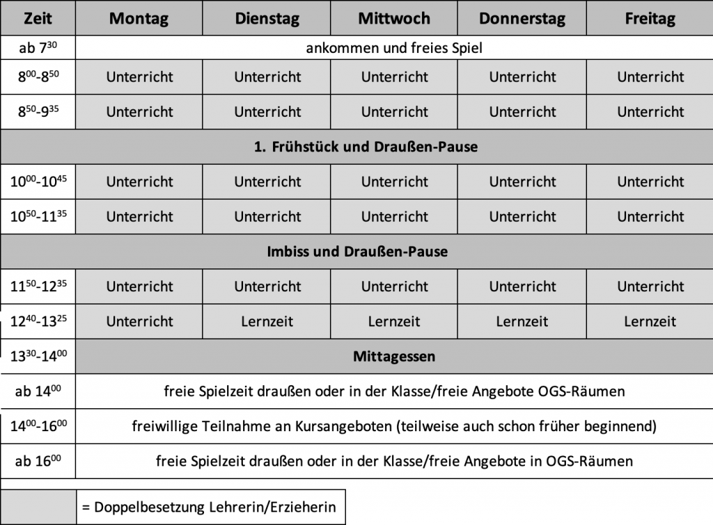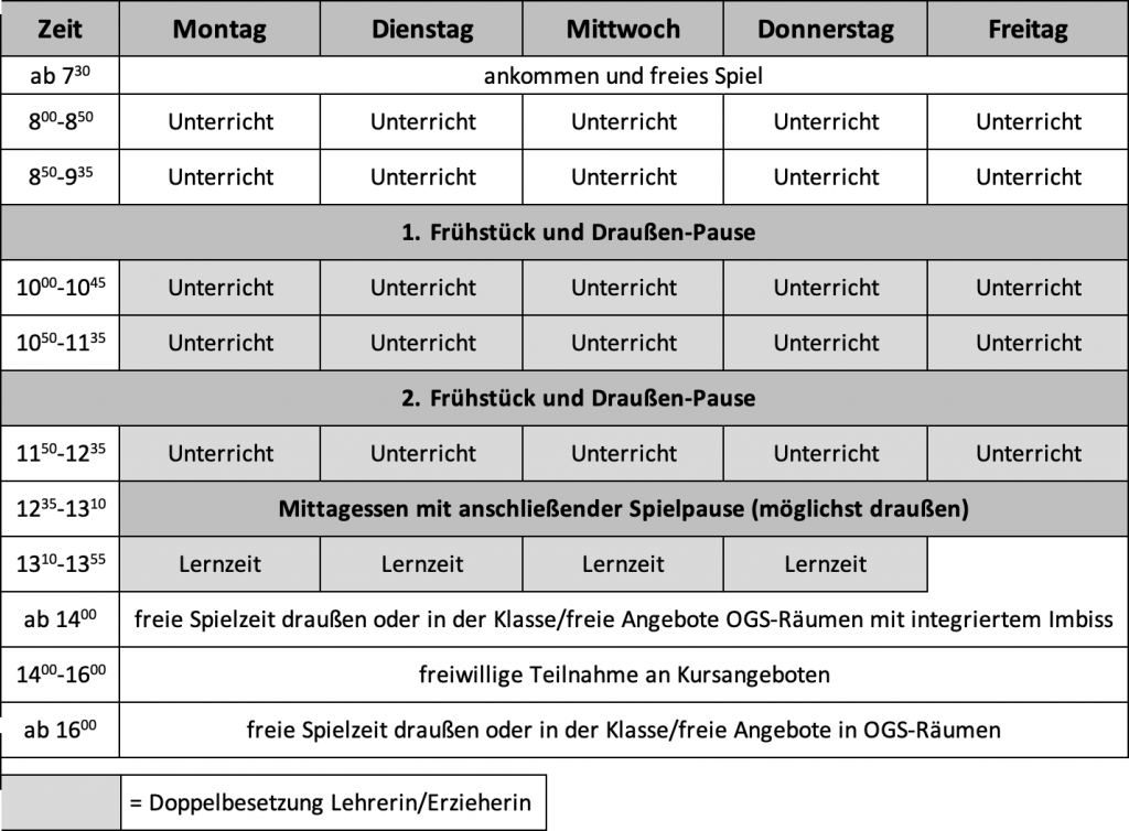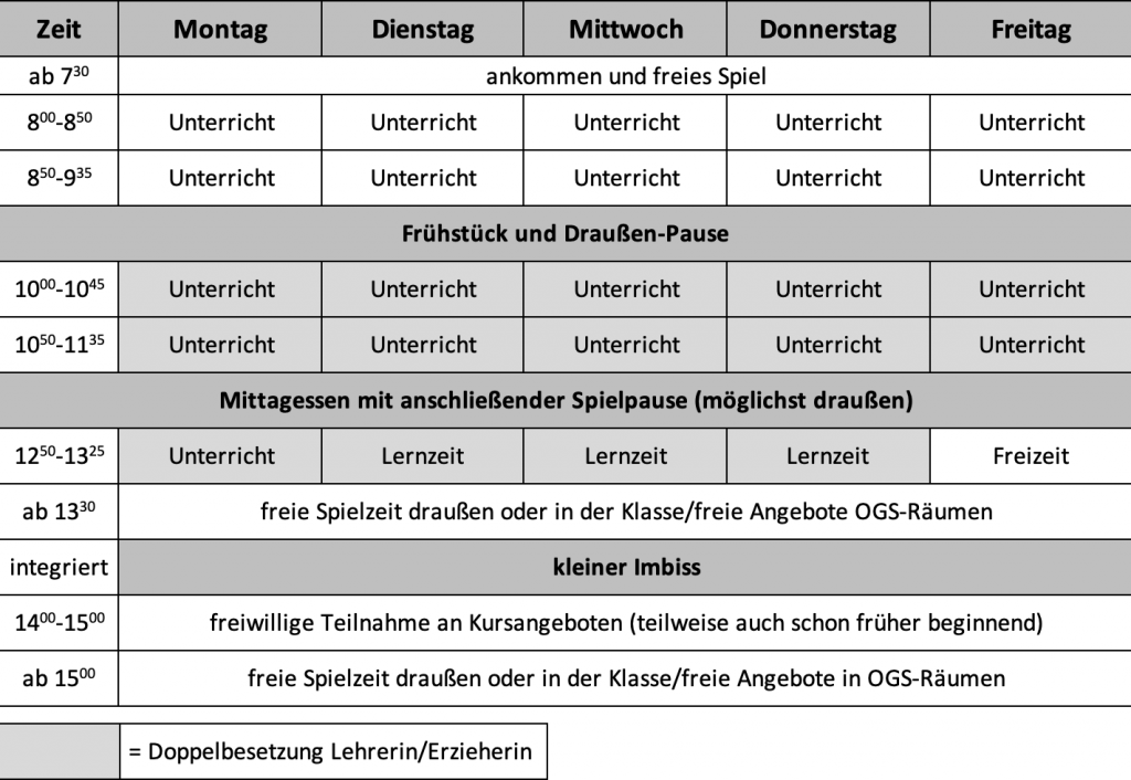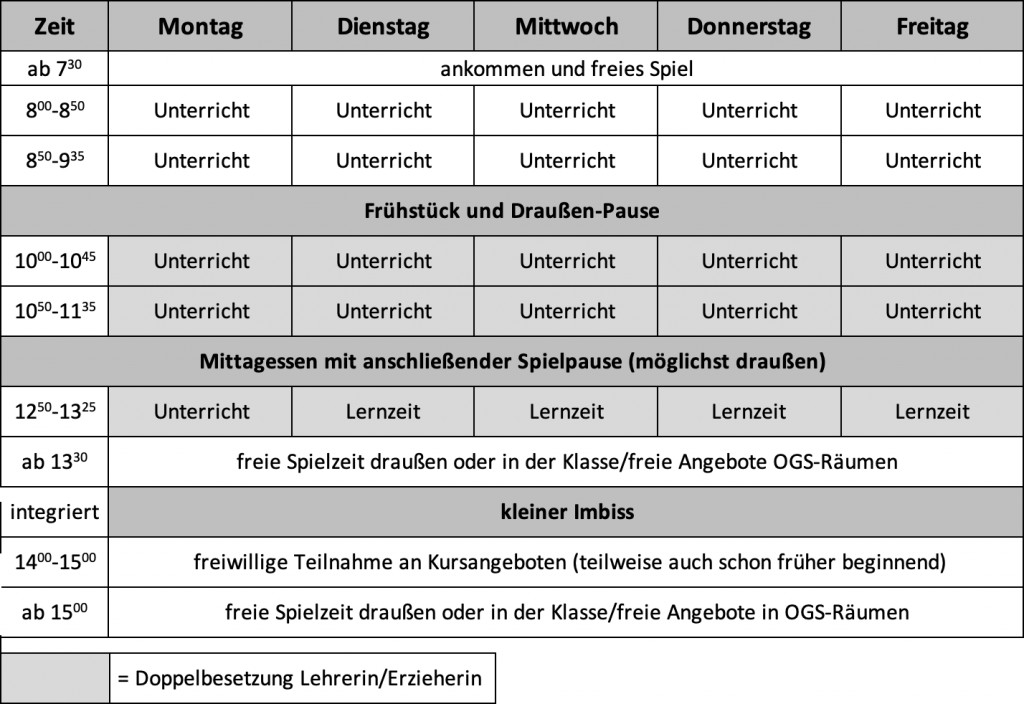Tagesablauf in einem 4. Schuljahr / OGS-Klasse