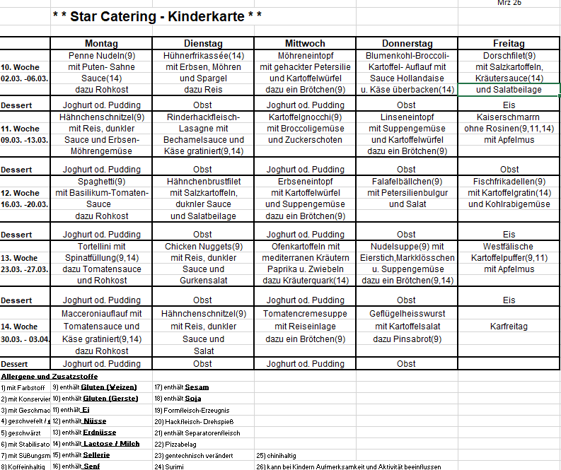 In unserer Schule wird beim Mittagessen kein Schweinefleisch angeboten. Vegetarisch lebende Kinder erhalten bei uns an „Fleischtagen“ eine fleischlose Alternative. Auch laktoseintolerante Kinder erhalten bei Bedarf eine Alternative. Sprechen Sie uns einfach an, wenn bei Ihrem Kind eine spezielle Ernährung benötigt bzw. gewünscht wird.